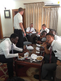We were blessed to have Elder Keetch, of the Seventy, visit us with his wife. Their son, our Elder Keetch, was scheduled to finish his mission last week with the June group. His parents had planned to pick him up here in Ghana, but due to an unexpected church assignment, they could not come until this week. Our Elder Keetch had fufu and went to the temple with his group, but then we sent him back to Praso for a few more days. It was a sweet reunion when they finally got together. I had to shoo the rest of the missionaries away from the windows so they didn't watch. The last thing I need is a bunch of "trunked-out" leaders.